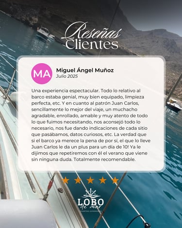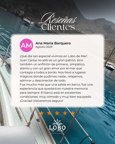 Descubre lo que nuestros clientes dicen sobre su experiencia en el mar.